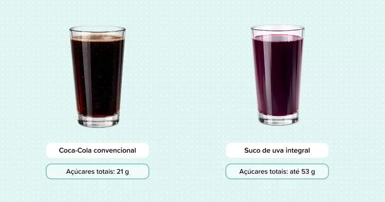 Suco de uva integral x Coca-Cola: e se o natural tiver mais açúcar?