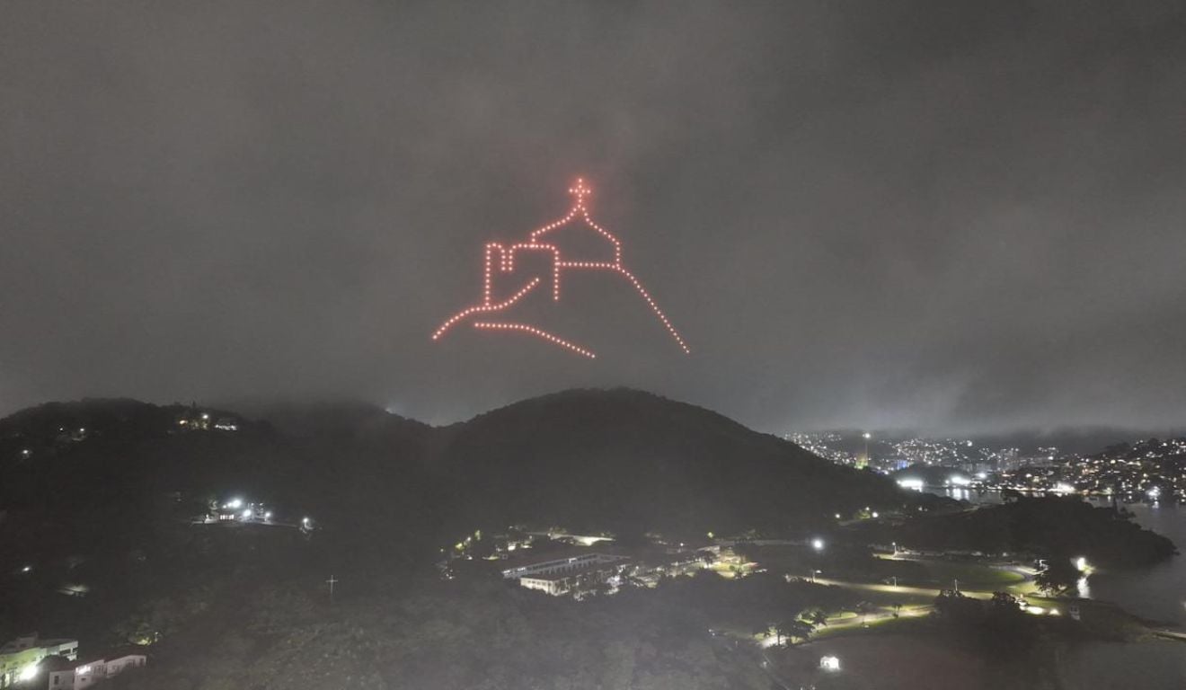 Ao final do percurso, por volta das 22h40, um show de drones homenageou símbolos da cultura caixaba na Prainha.
