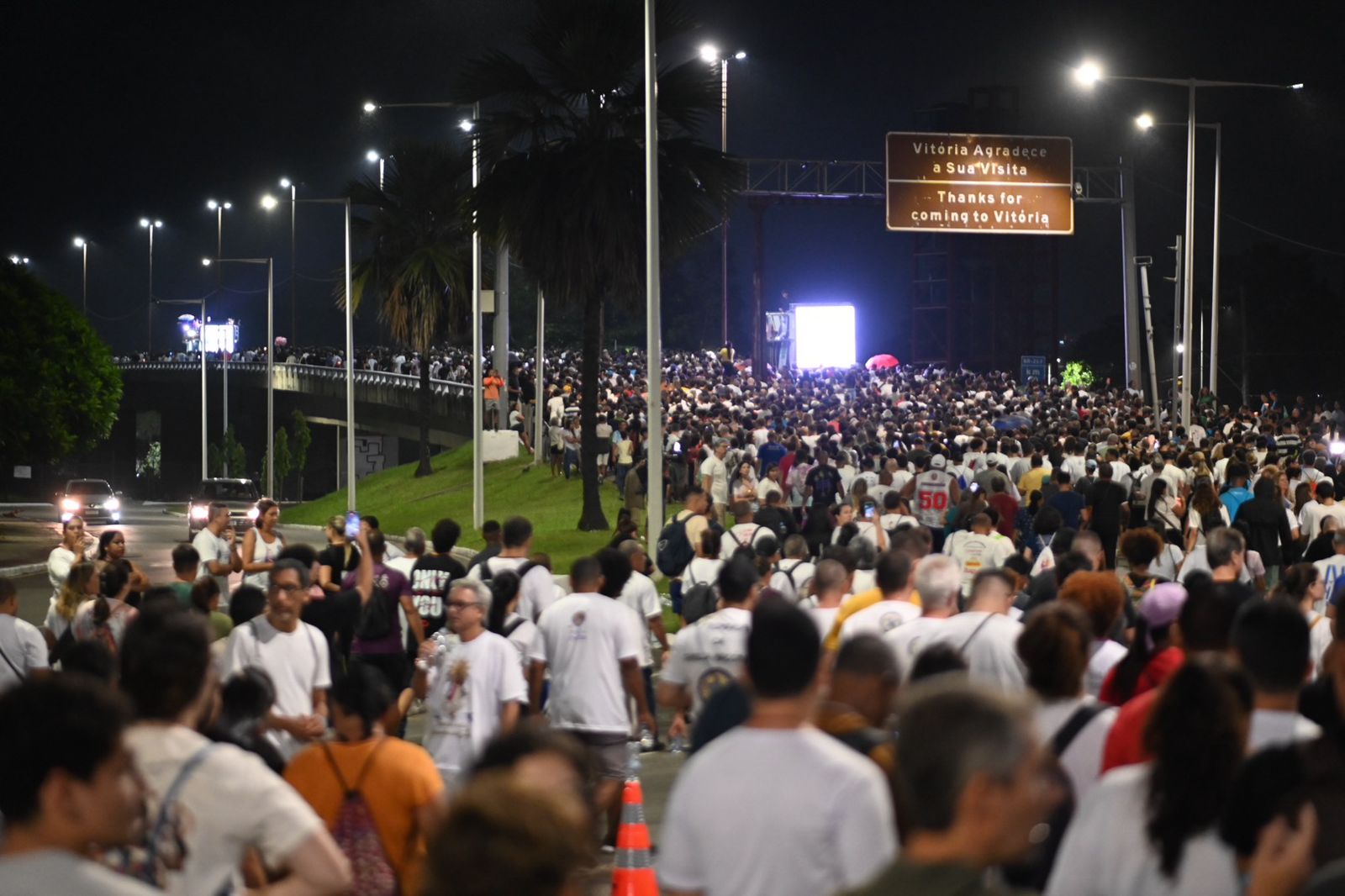 As imagens registradas pelo fotógrafo Thiago Soares mostram a multidão concentrada no ponto de partida, reforçando a força da tradição religiosa que mobiliza milhares de pessoas todos os anos. Os fiéis seguiram em direção à Segunda Ponte e percorreram a Avenida Carlos Lindenberg, em direção ao Centro de Vila Velha.